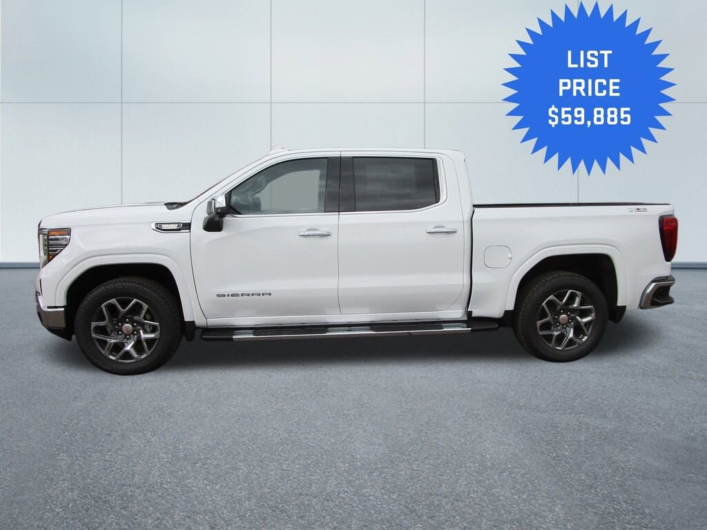 The Sierra 1500 SLT's sleek, white exterior exudes a commanding presence, while the well-appointed interior offers a premium driving experience. Enjoy the convenience of features like the wireless Apple CarPlay/Android Auto integration, the 120-volt bed-mounted power outlet, and the heated steering wheel, all designed to make your daily commute or weekend adventures more comfortable and connected.